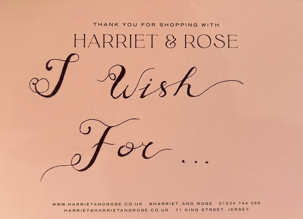 Harriet & Rose offer a gift list and wish list service alongside their online gift shop and shop at 71 King Street, St Helier. Thoughtful gifting and delivery in Jersey, Channel Islands made simple. Perfect for wedding gifts, housewarming, Christmas and birthdays.