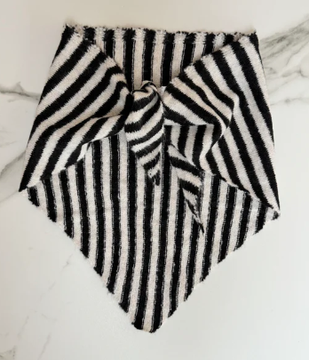 And of course, one cannot forget our triangle scarves. Some people instantly go ‘Oh! My granny had one like that!’ or like Harriet, associate them purely with the Queen, but triangle scarves are so much more than that! We can forgive you for being sceptical because, in honestly, we were when we first saw them…but became pleasantly surprised. Whilst they can be worn as headscarves (think vintage driving headscarves and bold sunglasses), we think that using them as neck scarves knotted, or over a jacket or jumper, look particularly great! We have a range of pastel stripe colours as well as black and grey for those everyday basics.