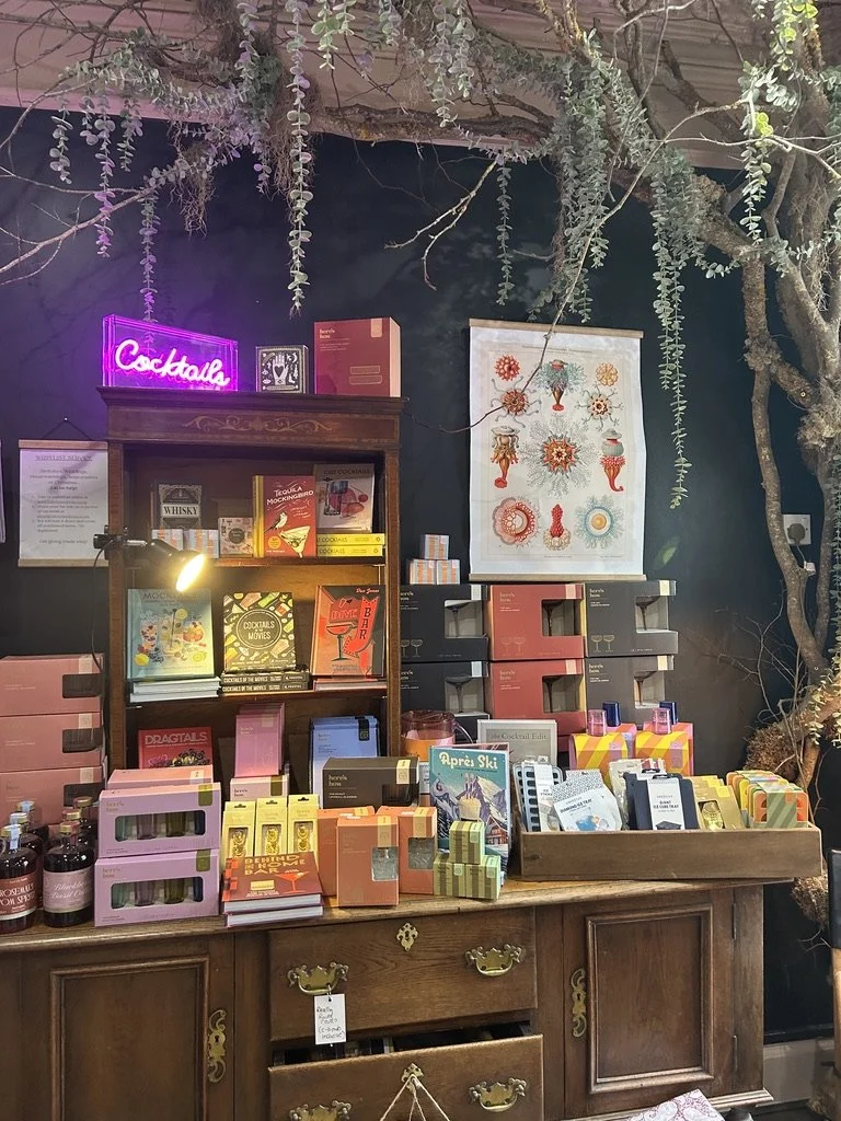 Our upstairs rivals the best book shops - watch out Waterstones because we’re coming for you! (well not quite, because our book selection is obviously much more unique, and just better). What is now our first floor has been completely revitalised, drawing on the classic ‘book nook’ styled cosy library, sprinkled with a little bit of fun from our barware and hosting appetiser essentials interwoven between. Utilising our dark antique furniture, we have really leaned into a warm and inviting feeling to make your shopping experience that bit more homely.